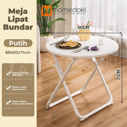 Homedoki Meja lipat portabel serbaguna / meja makan lipat / meja lipat bundar / meja lipat persegi / meja kopi berdiameter 60cm