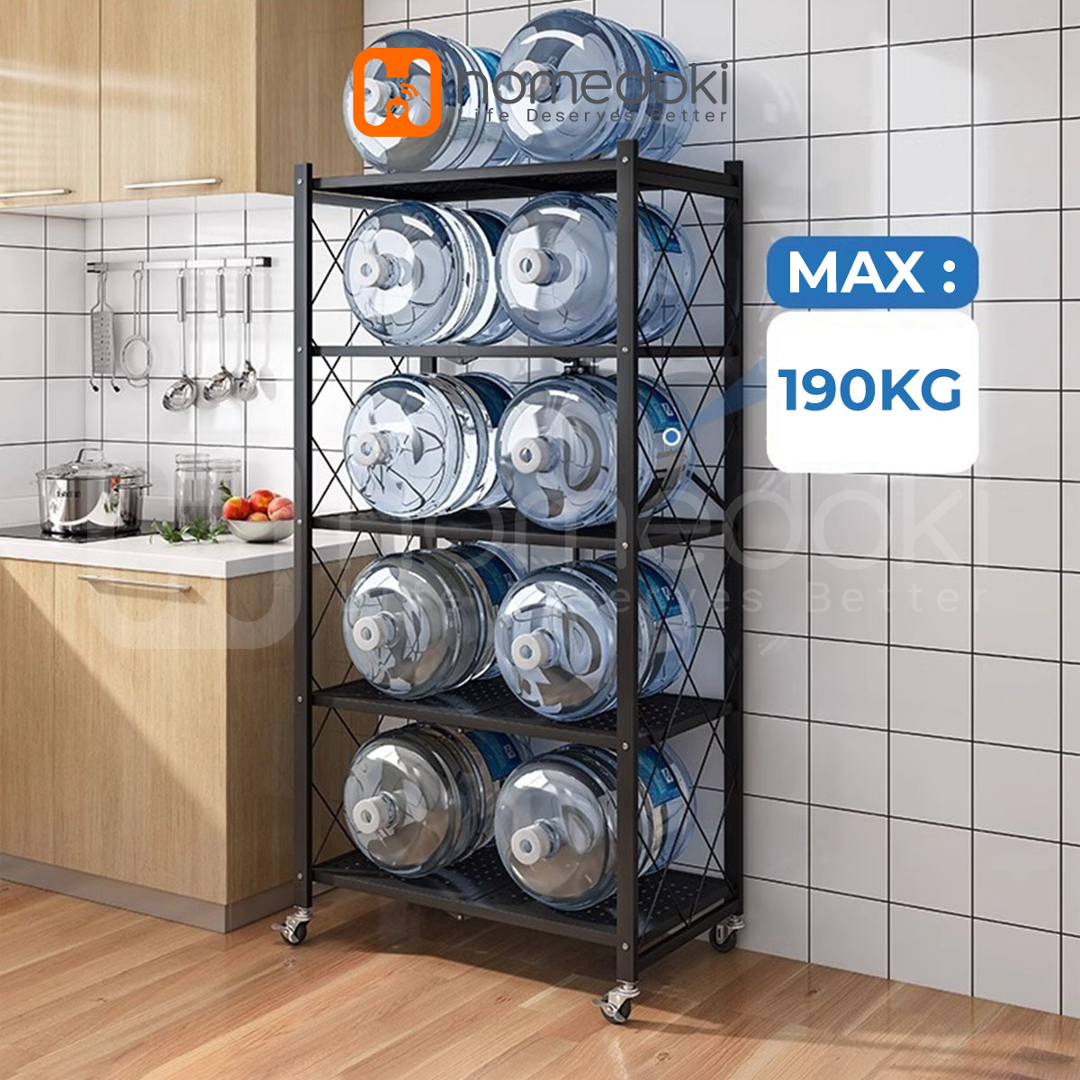 Homedoki Rak Lipat penyimpanan multifungsi 5 tingkat/rak penyimpanan gudang/rak penyimpanan dapur/lemari buku