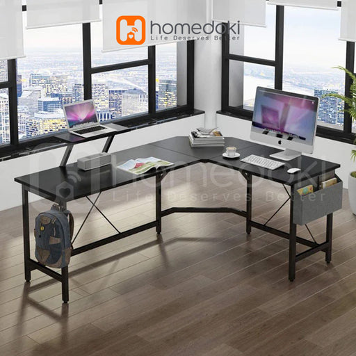 Homedoki Meja Kerja L / Meja Komputer / Meja Kantor / Meja Belajar Aesthetic / Meja Belajar