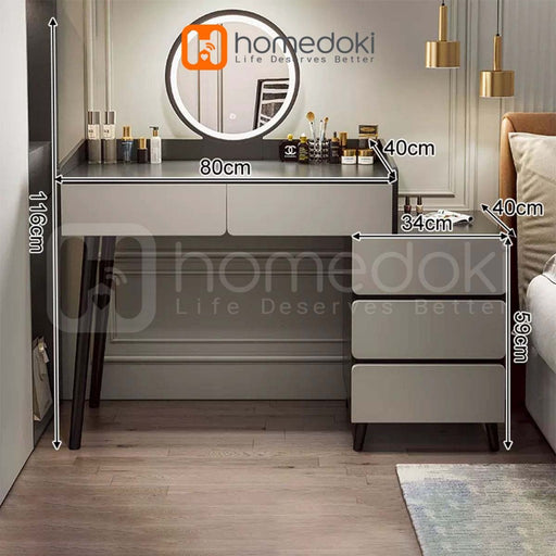 Homedoki Meja Rias Abu-abu / Meja Rias Minimalis / Meja Rias / Meja Rias Penyimpanan