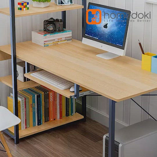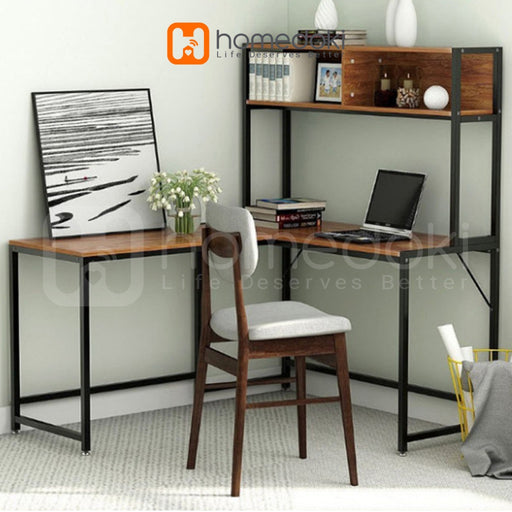 Homedoki Meja Belajar / Meja Komputer L / Meja Kerja Rumah / Meja Belajar Rak Buku / L shaped Desk