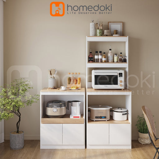 Homedoki Rak dapur / rak lemari dapur / Rak oven microwave / lemari dapur dengan pintu / Rak dapur tahan debu
