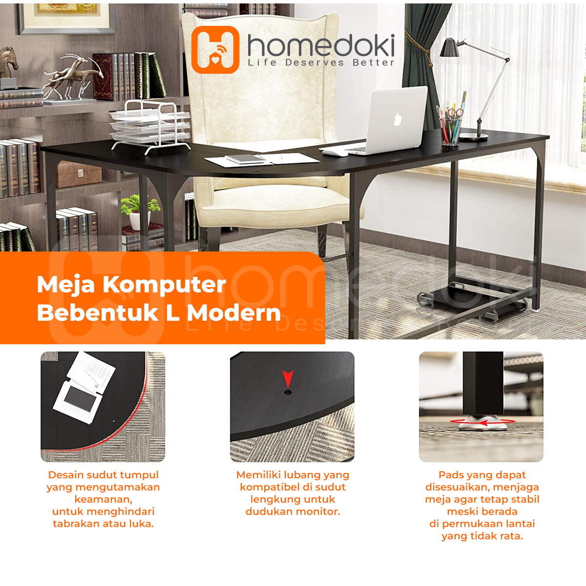 Homedoki Meja Kerja L / Meja Komputer / Meja Kantor / Meja Belajar Aesthetic / Meja Belajar
