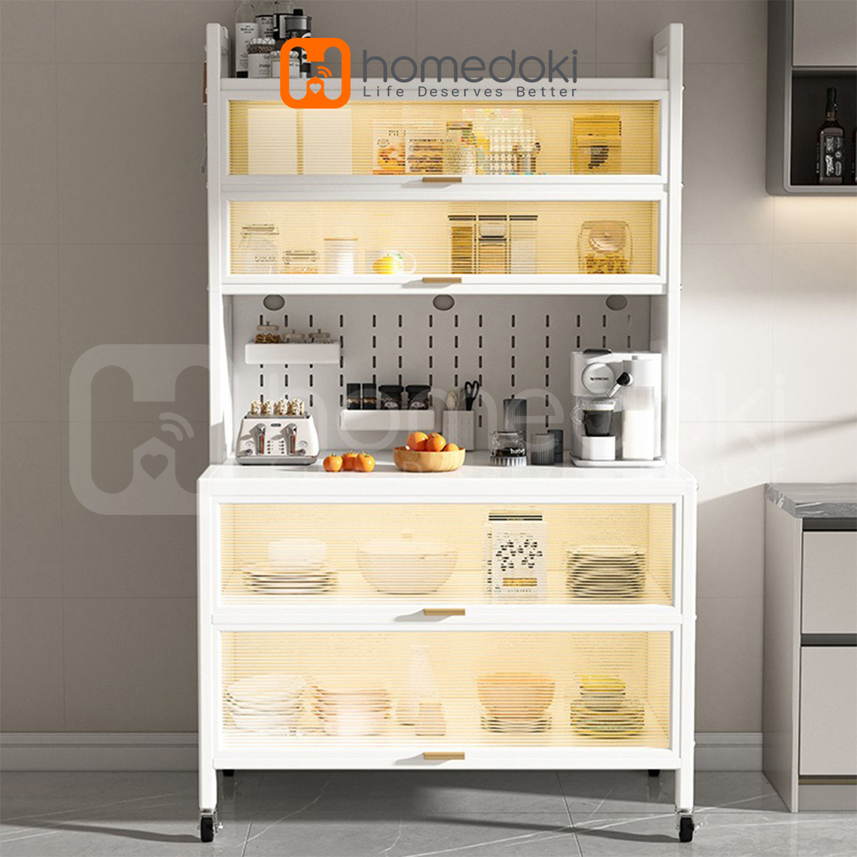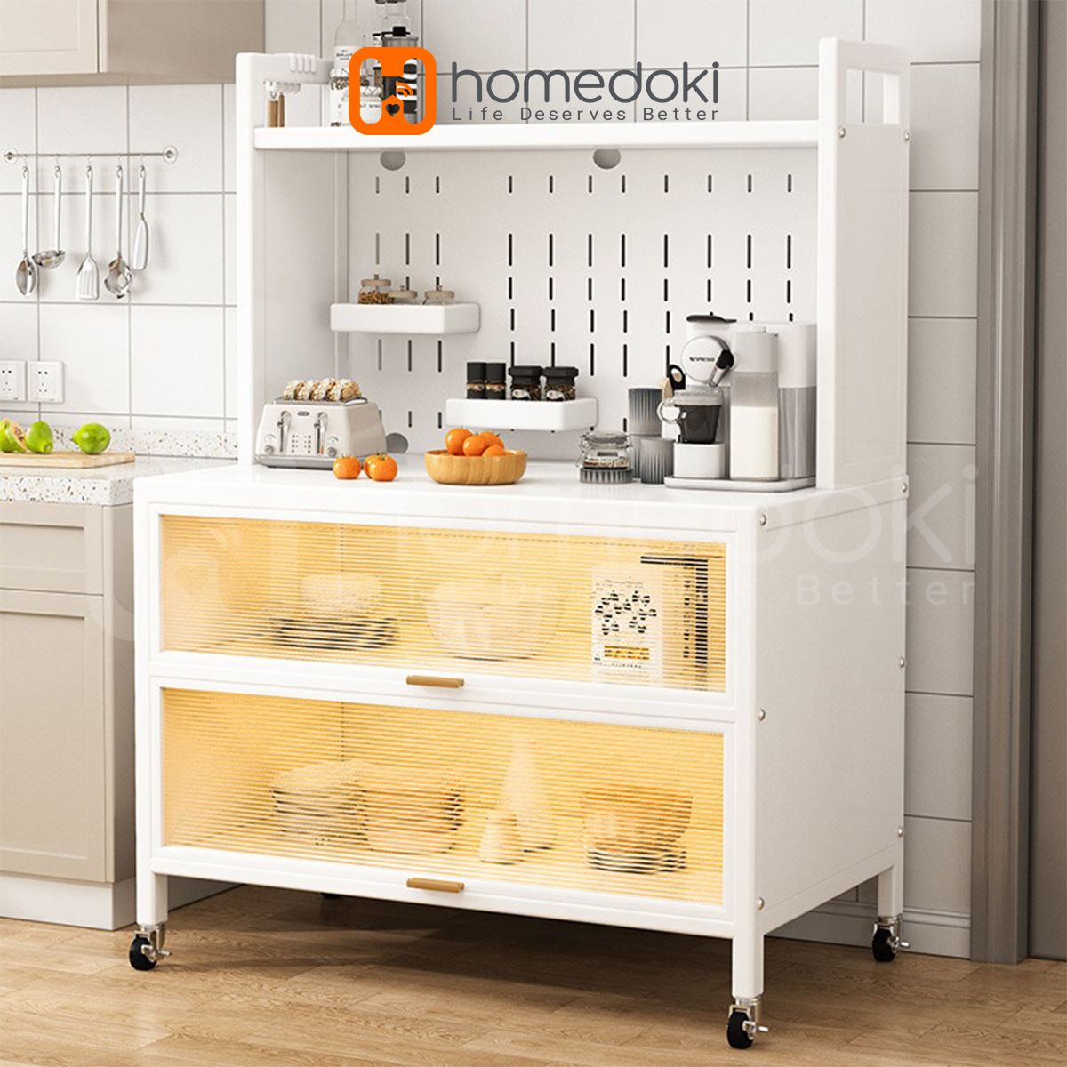 Homedoki Rak dapur / rak lemari dapur / Rak oven microwave / lemari dapur dengan pintu / Rak dapur tahan debu
