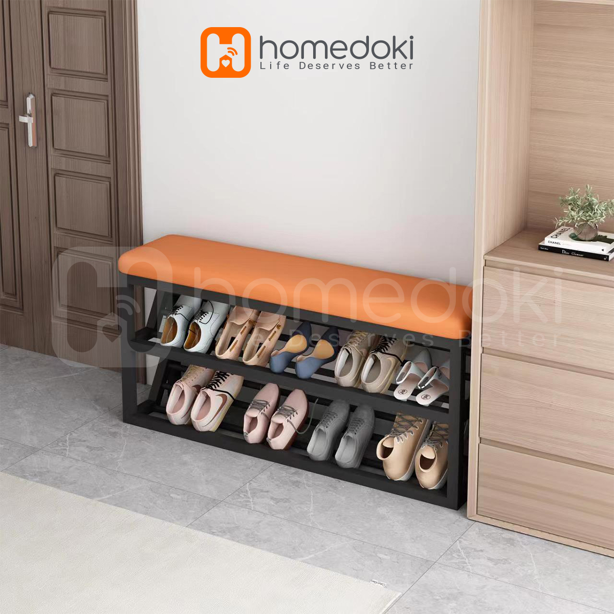 Homedoki Rak Sepatu / Rak Sepatu Duduk / Rak Sepatu Sofa / Bangku Rak Sepatu / Lemari Sepatu 2 Susun