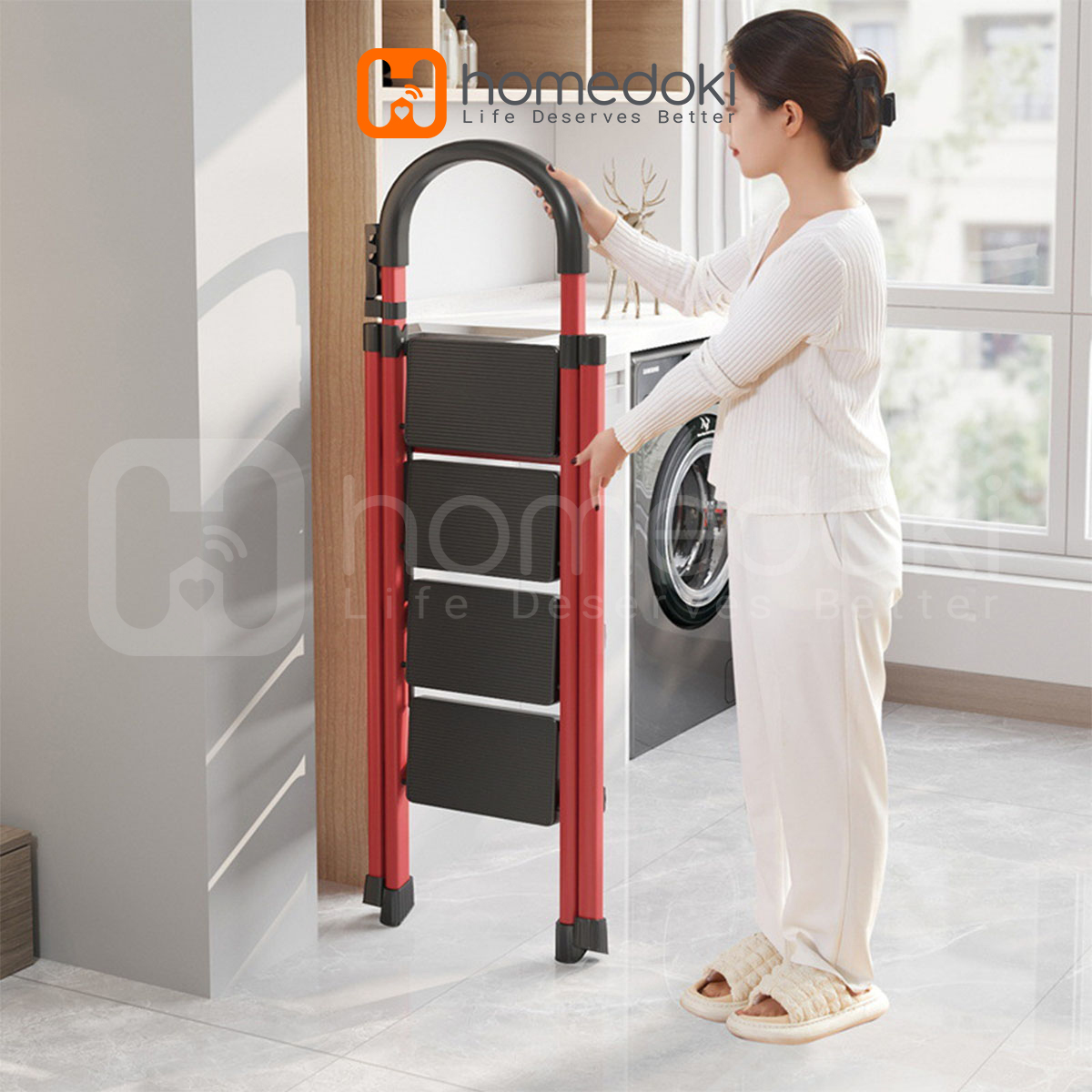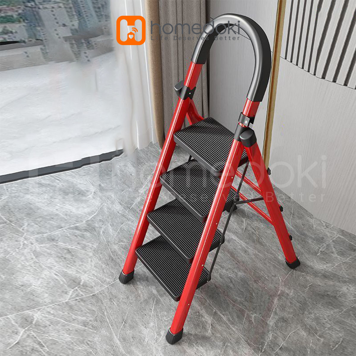 Homedoki Tangga Rumah Lipat/Tangga Besi Lipat 3/4/5 Step Household Steel Ladder